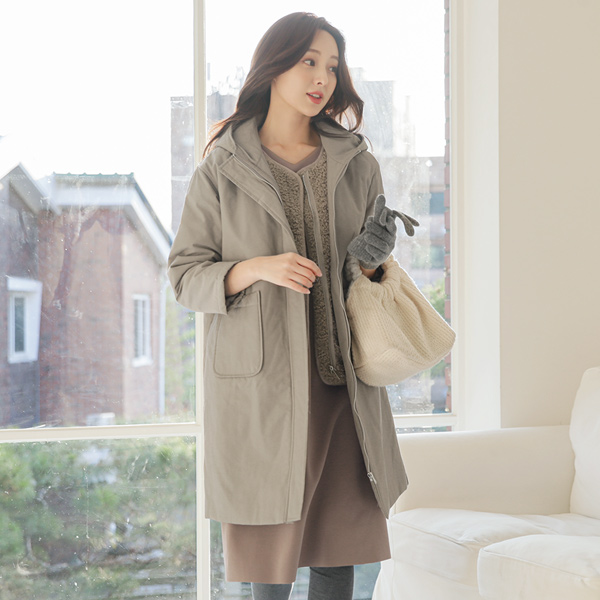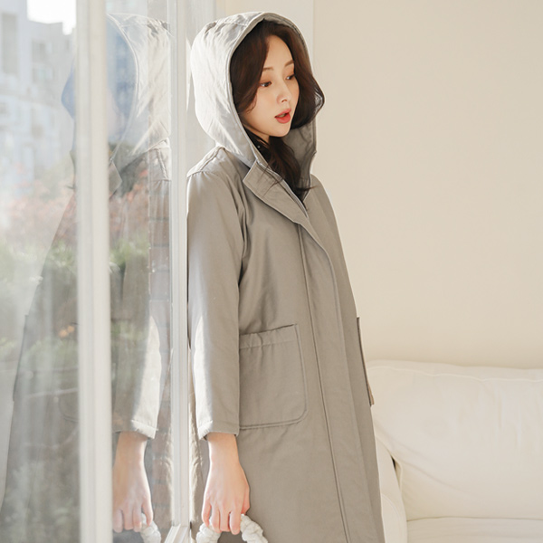Big Pocket Coating Cotton Hood Long-Padded Jumper