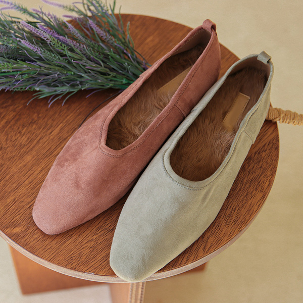 Mink Fur Lining Suede Flat shoes