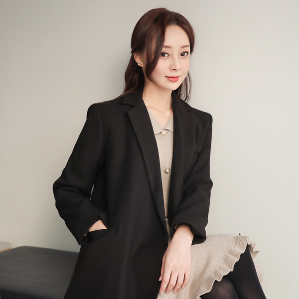 Simple Flap Pocket Twill Wool Long Coat(quilted lining)