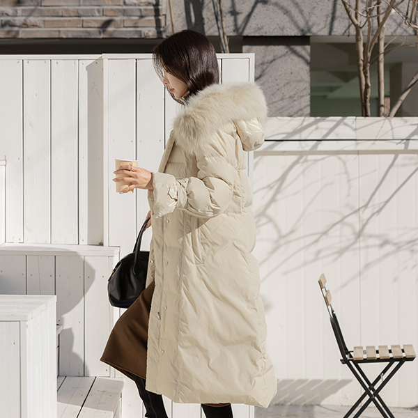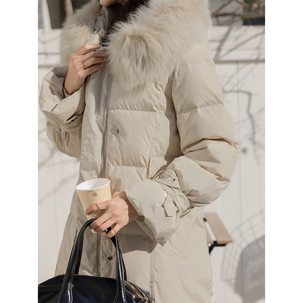 Real Fox-Fur Duck Down Long-Padded Jumper