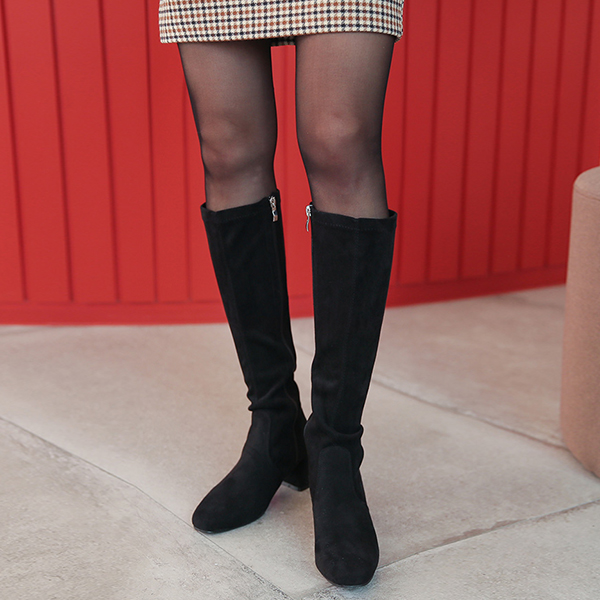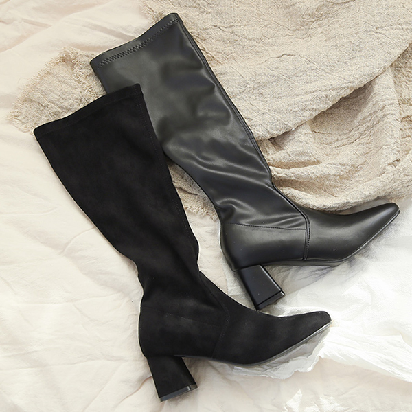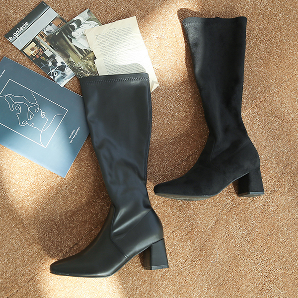 Slim Line Middle Block Heels High Long Boots