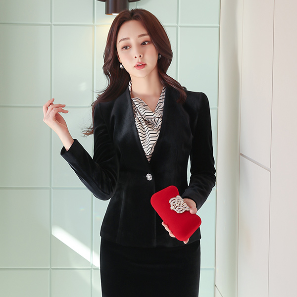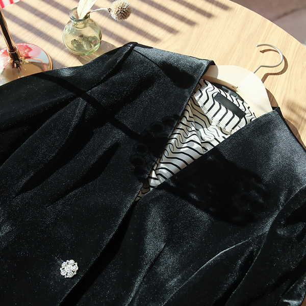 Formal Twinkle Cubic Button Velvet No-collar Jacket
