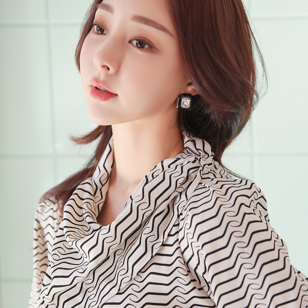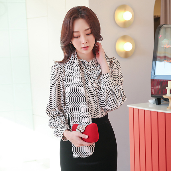Mono Wave Shirring Long Scarf Blouse