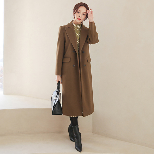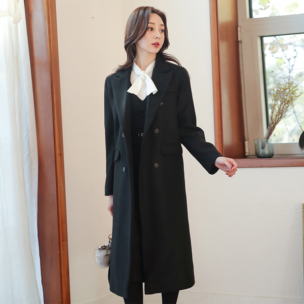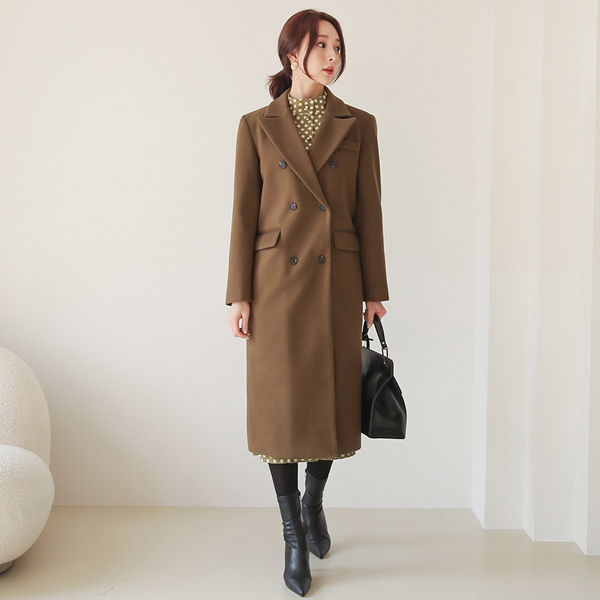 Peaked Collar Double-button Long Coat(quilted lining)