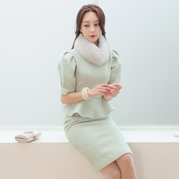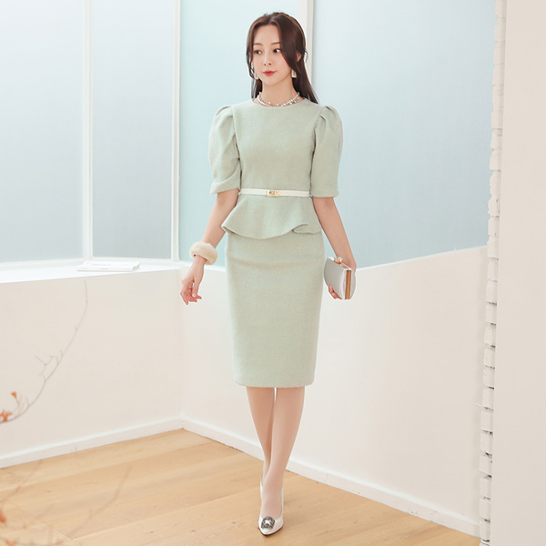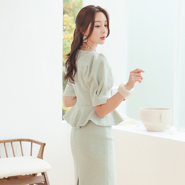 Lady Puff Peplum Bouclé Two-piece SET