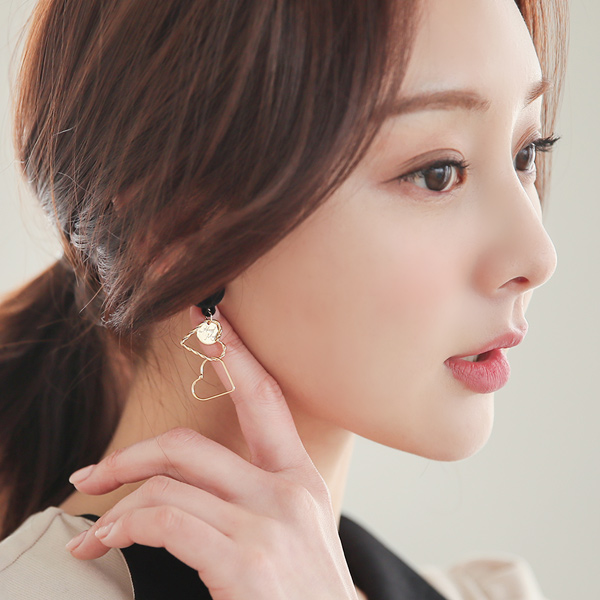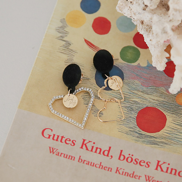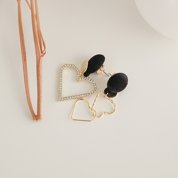 Unbalance Gold-Heart Velvet Drop Earring