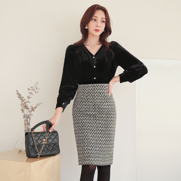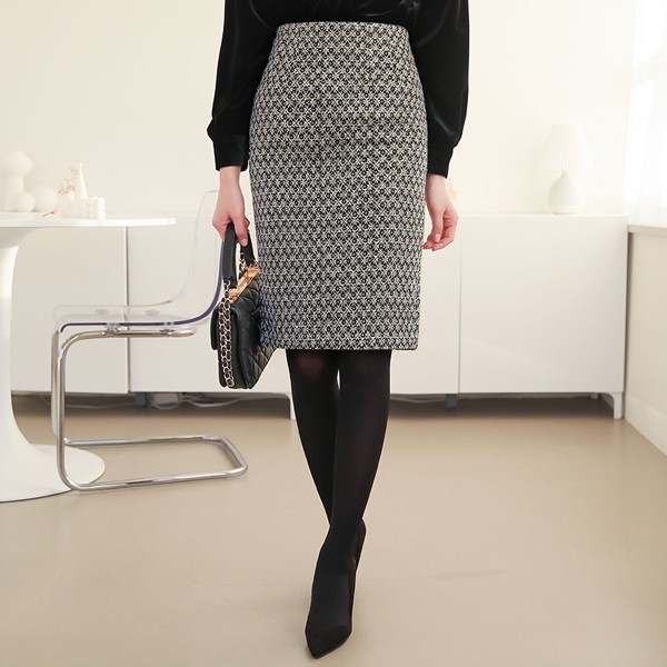 Spangle pearl Tweed Wool Skirt
