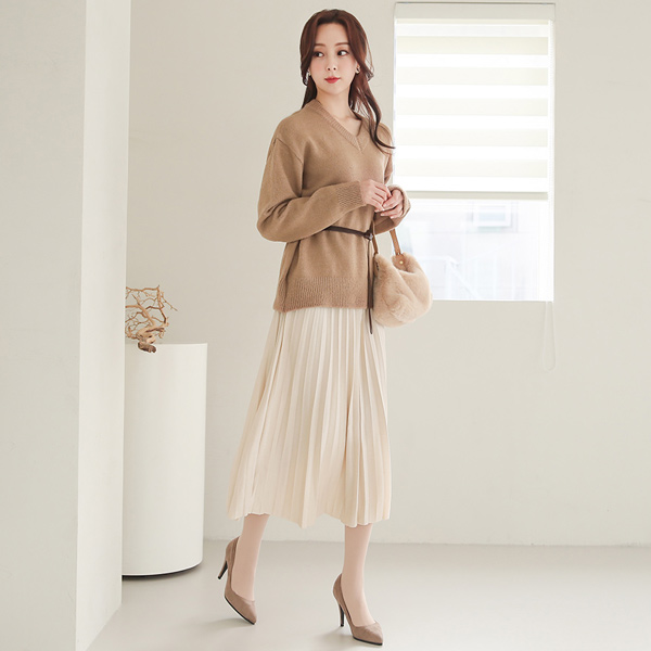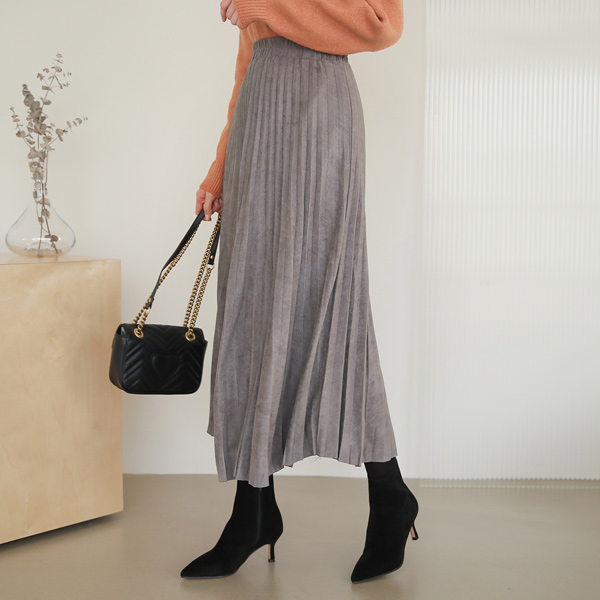 Suede Banding Pleats Skirt