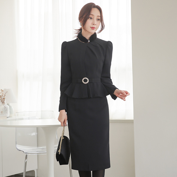 Pintuck Shirring Neck Peplum Dress