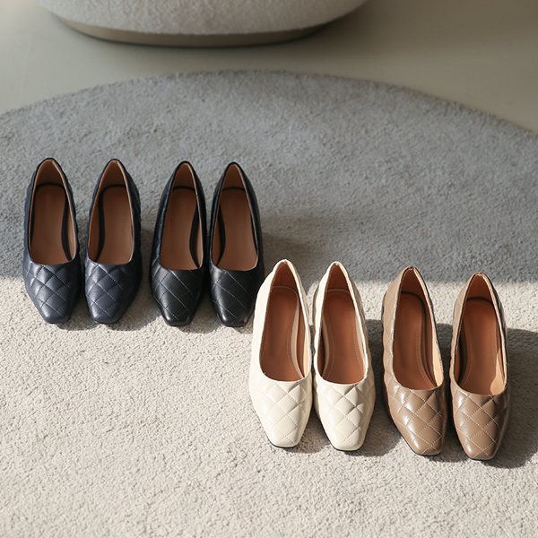 Oblique Block Heels quilting Stitch Pumps Heels