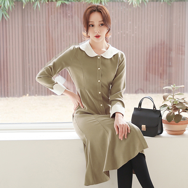 Romantic Wave Collar&Sleeves Color Combination Dress