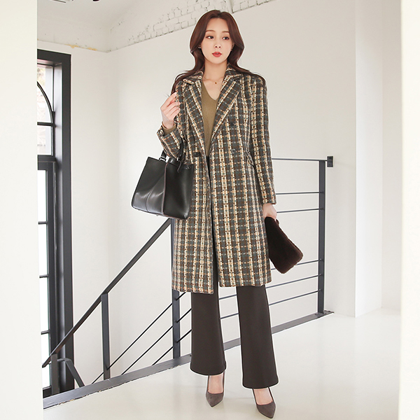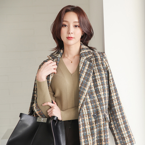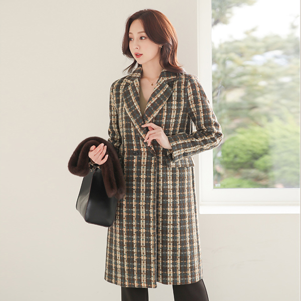 Knitting Check Double-button Wool Coat