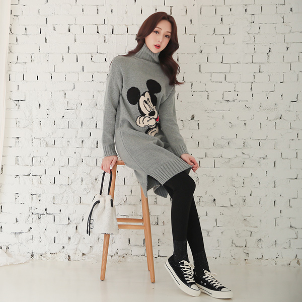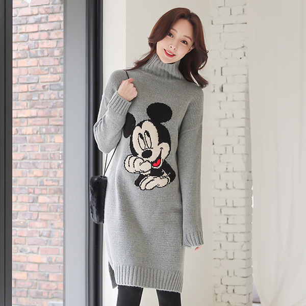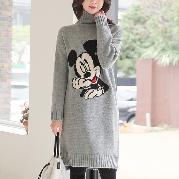 Turtleneck Mickey Long Knit Dress