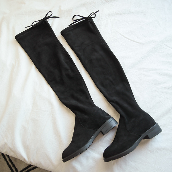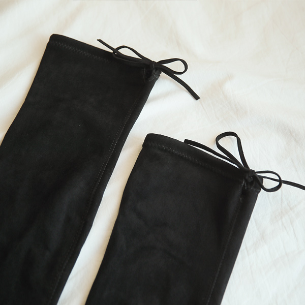 Suede 로우 Block Heels Long Socks Boots(Fur Lining)
