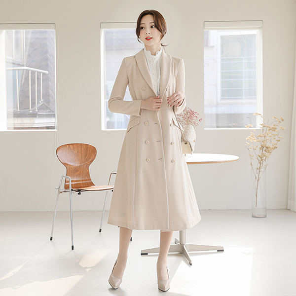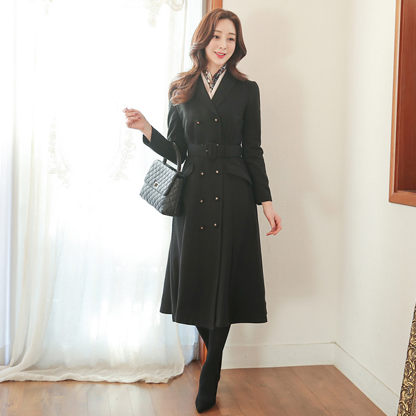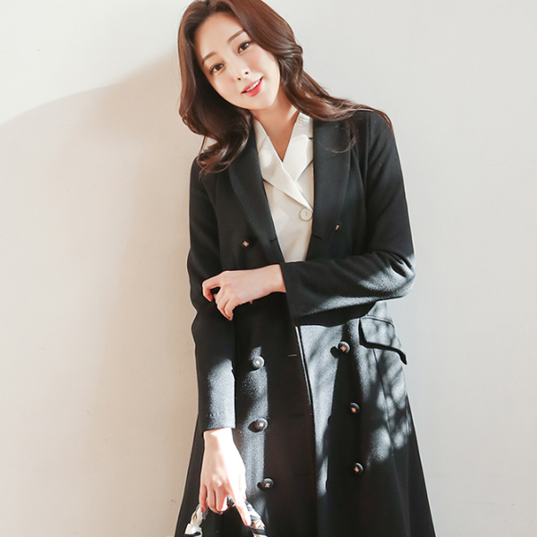 Shawl Collar Gold Double-button Wool Dress&Coat