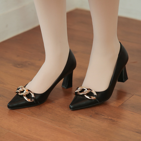 Chain Oblique Block Heels Stiletto Heels