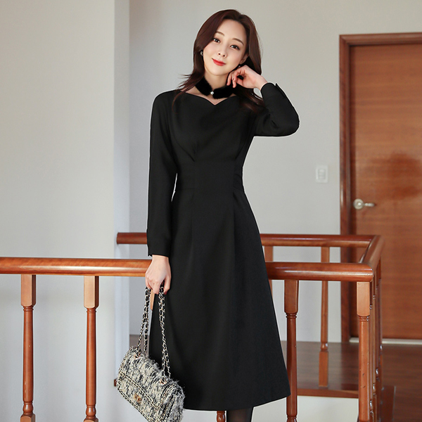 heart Boat Neck Wide Belted Pintuck Dress