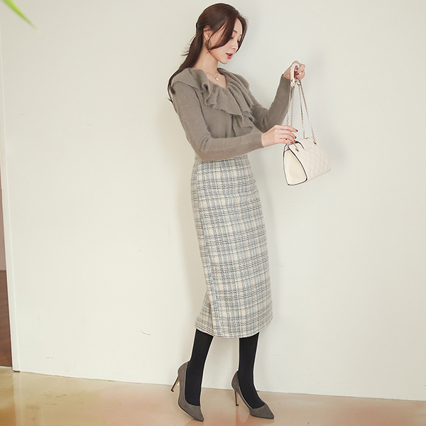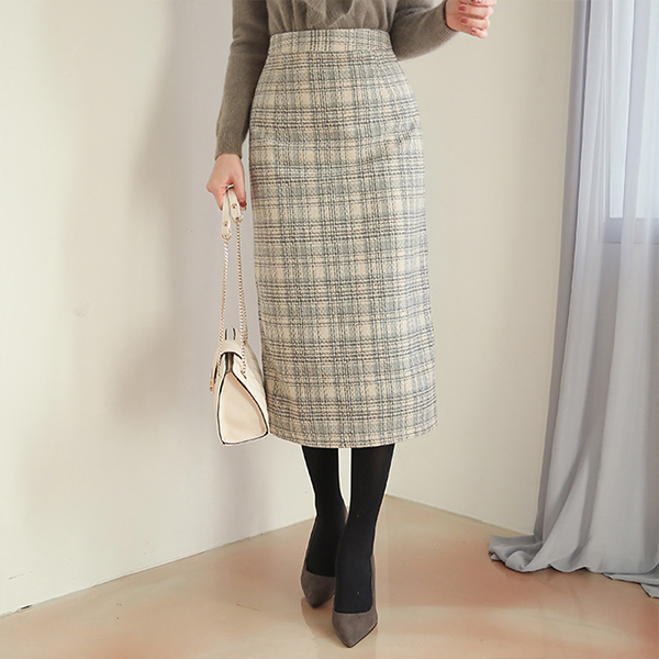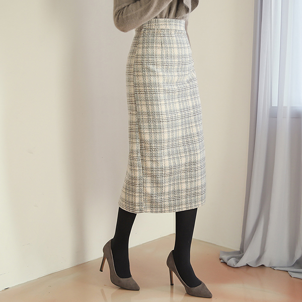 스노잉 Check Tweed Wool Midiskirt