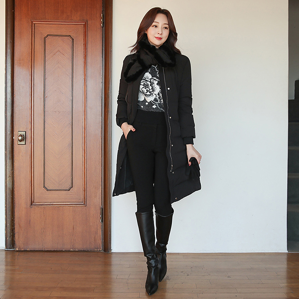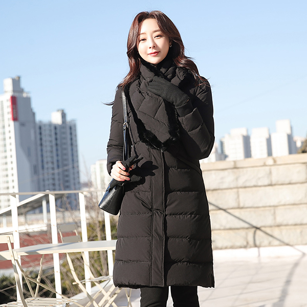 Rabbit-Fur Trimming muffler SET Slim Duck Down Padding