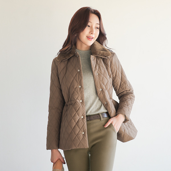ECO-Fur Collar String quilting Short-Padded Jacket