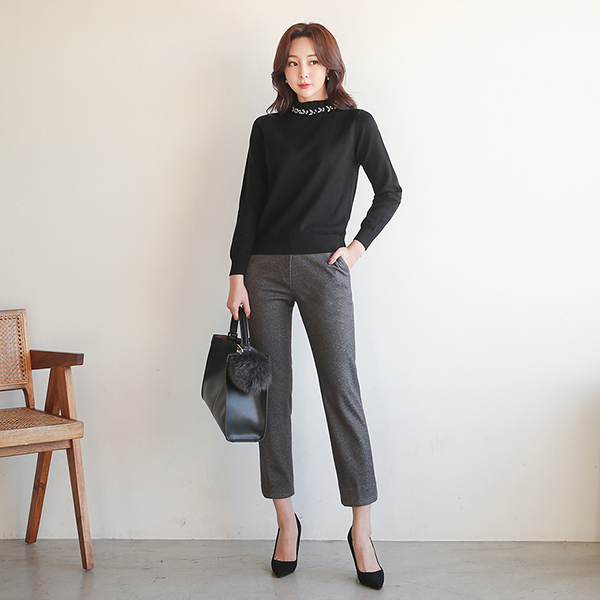 Bokashi Fleece Wool Slit Straight Slacks