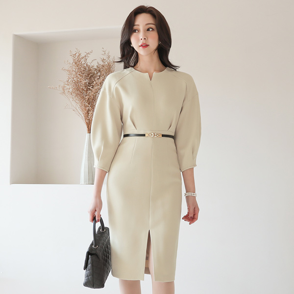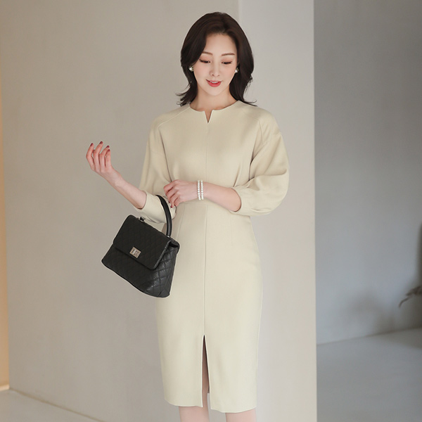 v Cutting-Neck Puff Cutting Dress