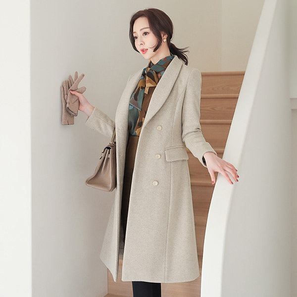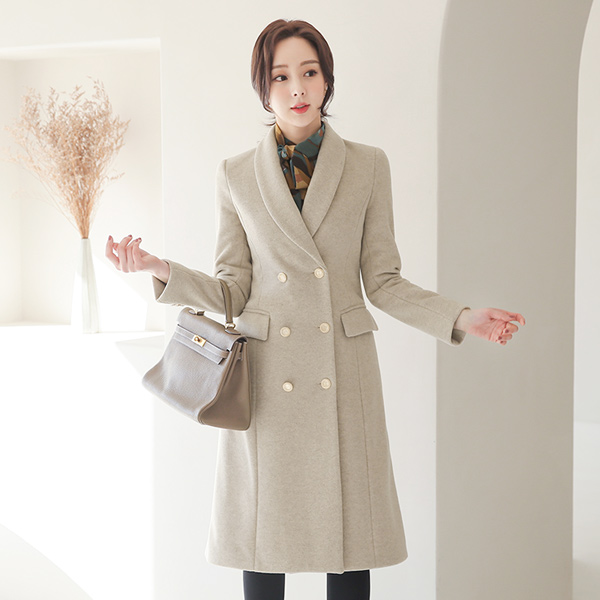 Shawl Collar Gold Double-button Wool Coat(quilted lining)