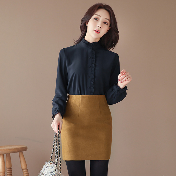 Vivid Woolen High-Waist Mini Skirt