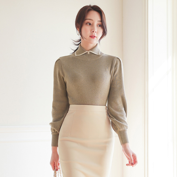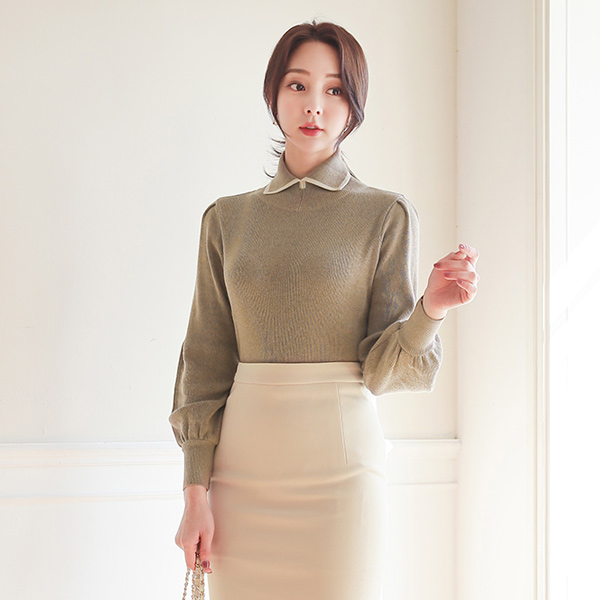 Line Color Combination Collar Puff Wool Knit