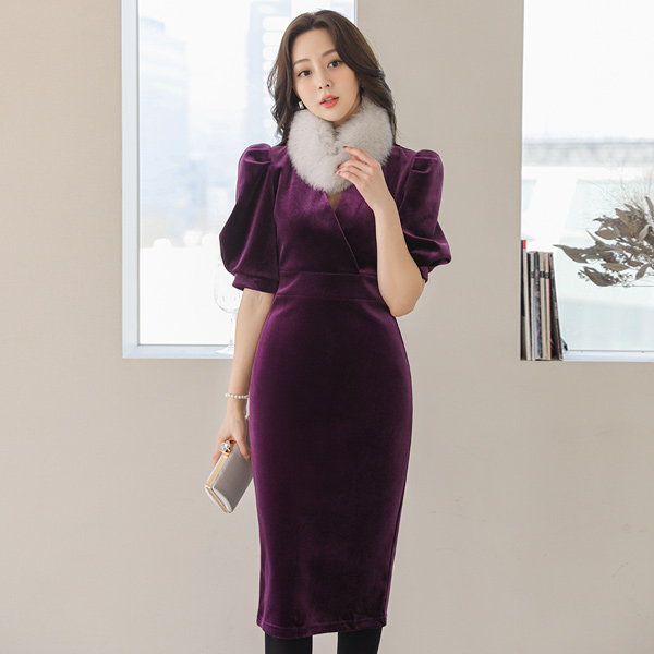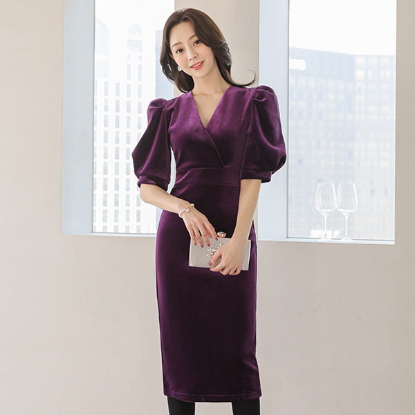 Velvet Glam Puff Sleeves Dress