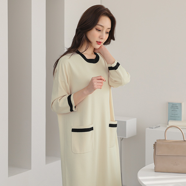 Biscos Color Combination-line Long Knit Dress