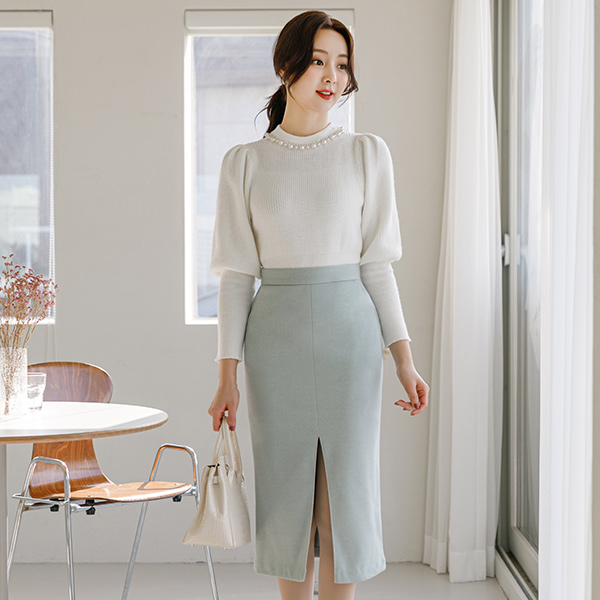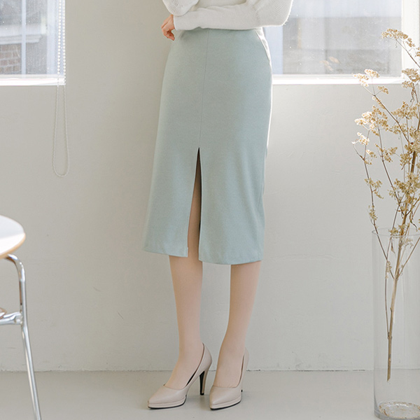 Obi-Line 심 Pocket Deep-Slit Wool Skirt