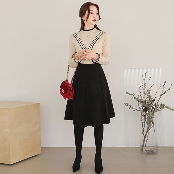 Double-button Belted Flared Trench Wool Coat