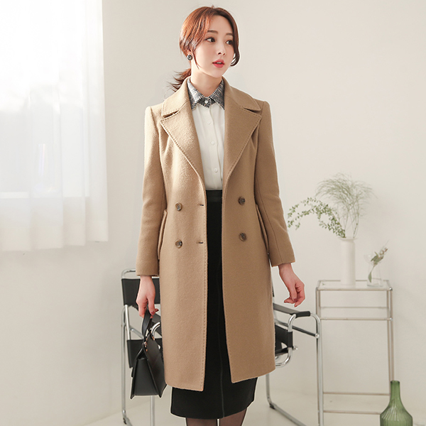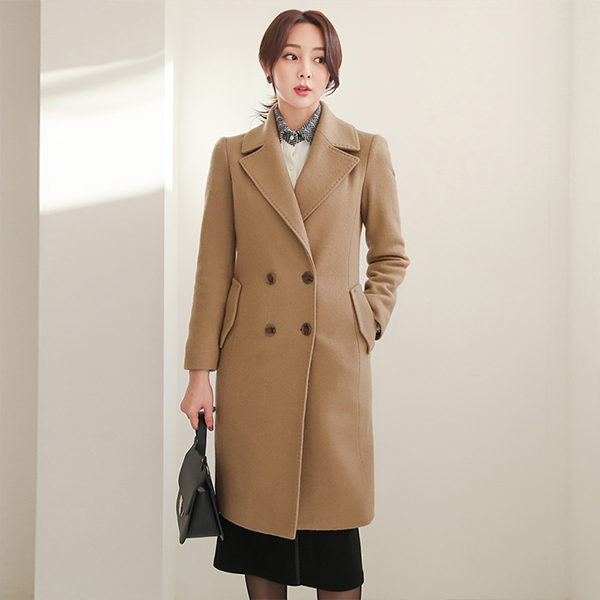 Stitch Wide-Collar Double-button Slim Wool Coat(quilted lining)