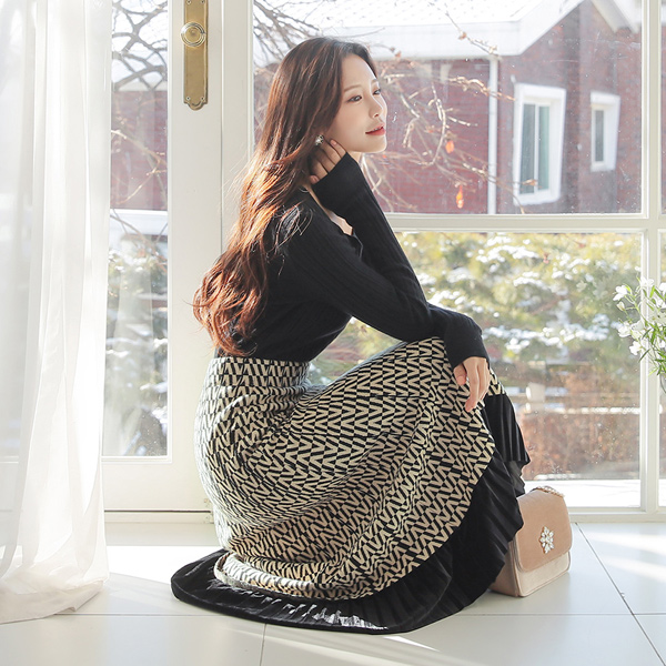 Black 플라워라인 Fresh-Water Pearl Earring
