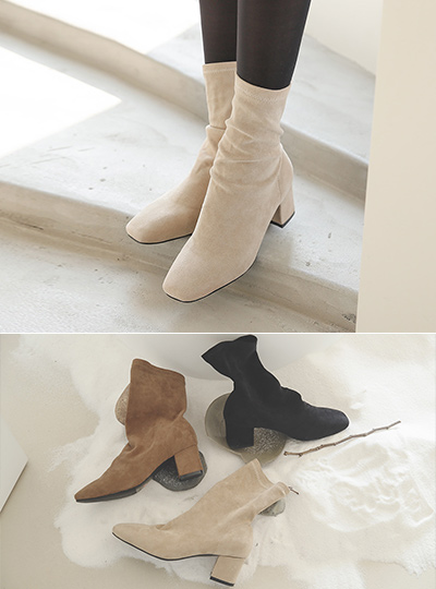 Suede Square Toe Span Socks Boots