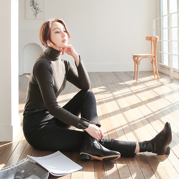 Sleeves Triangle Slim Corduroy Turtleneck Knit T-shirt