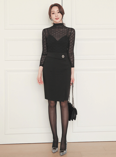 Coco Black Bustier Dress&레이스탑 SET