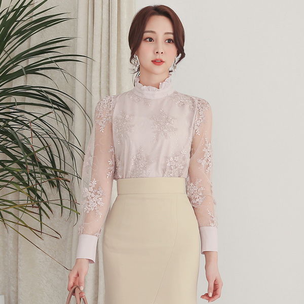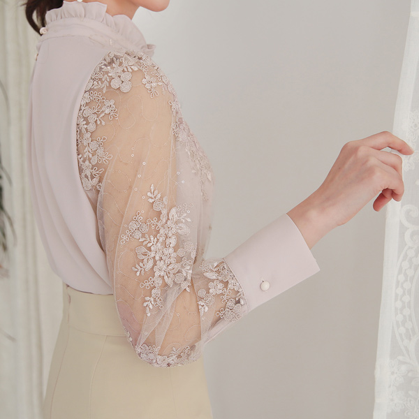 High-Neck Spangle Lace See-through Blouse