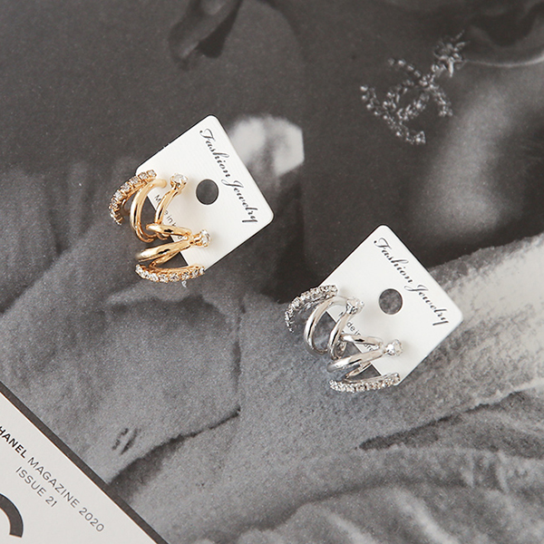 쓰리링 Mini Cubic layered Earring