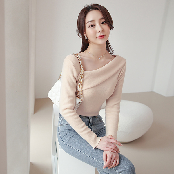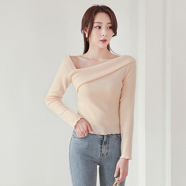 Unbalance 사선랩 Off Shoulder Fleece T-shirt