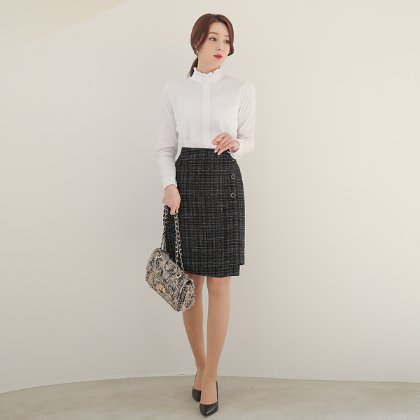 Velvet Tweed Button A-line Midiskirt