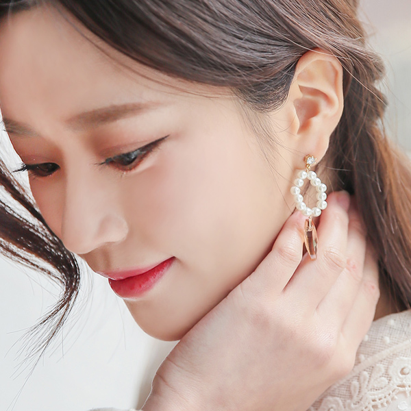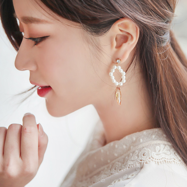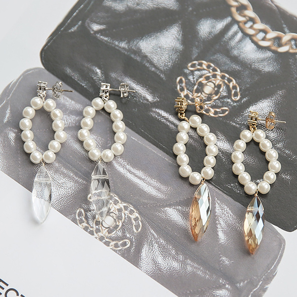 Oval Pearl Ring Crystal Drop Earring