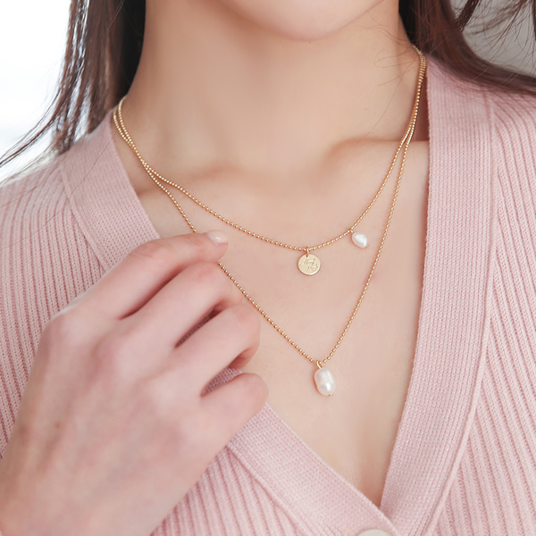 Gold Coin&Pearl layered Necklace