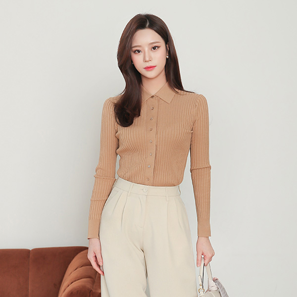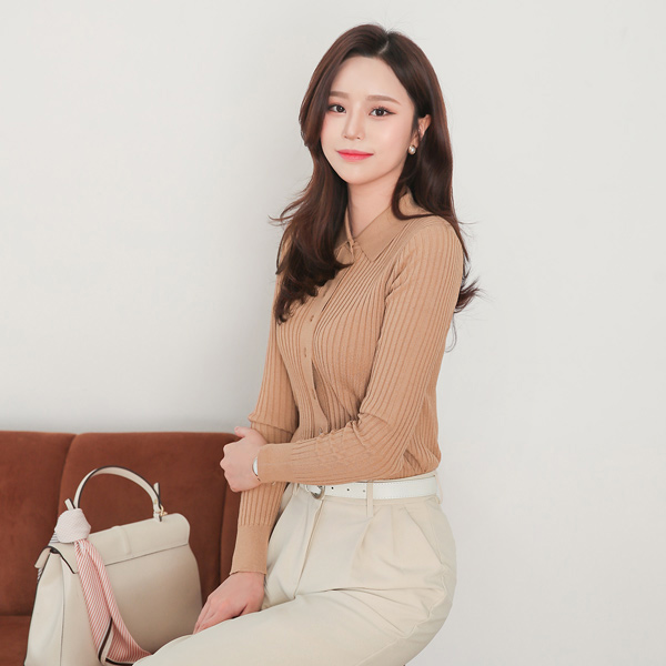 Single Collar Corduroy Cardigan Knit
