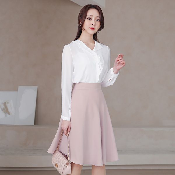 Unbalance Frill Open-Collar Blouse