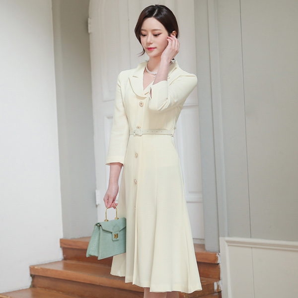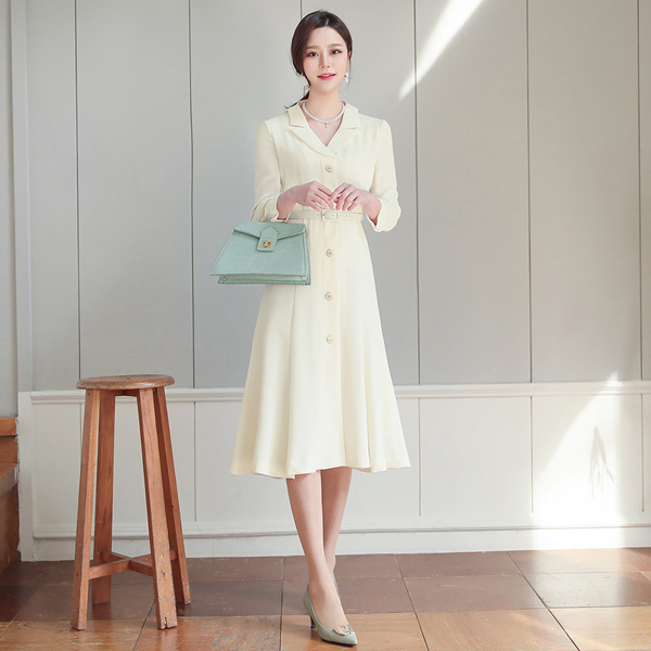 Antique Gold-Ring Button Double Collar A-line Dress