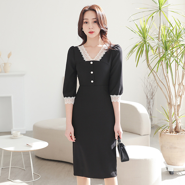 Black 플라워라인 Fresh-Water Pearl Earring
