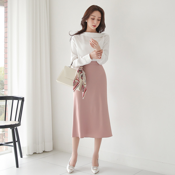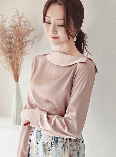 Unbalance Off Shoulder Flat Collar Satin Blouse