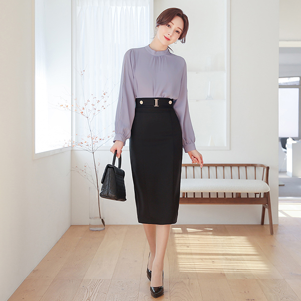 High-Neck Chain-Decorated Double Sleeves Blouse